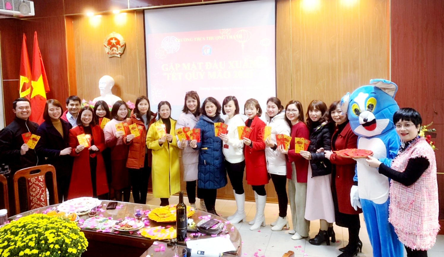 Mừng tuổi đầu năm là phong tục đẹp của dân tộc thể hiện lời cầu chúc may mắn, sức khỏe và tài lộc cho mọi người. Theo đó cả người nhận và người tặng phong bao lì xì đều được nhận những điều tốt đẹp trong năm mới. Đại diện nhà trường, công đoàn, Đ/c Trần Thị Ngọc Yến - Bí thư Chi bộ, Hiệu trưởng Nhà trường; Đ/c Đỗ Thị Thu Hoài - Phó Bí thư Chi bộ, Phó Hiệu trưởng Nhà trường, Đ/c Nguyễn Thị Sơn Hường - Phó Hiệu trưởng nhà trường; Đ/c Phạm Thị Thanh Mai- Chủ tịch Công đoàn gửi tới mỗi thành viên trong HĐSP một phong bao lì xì may mắn.