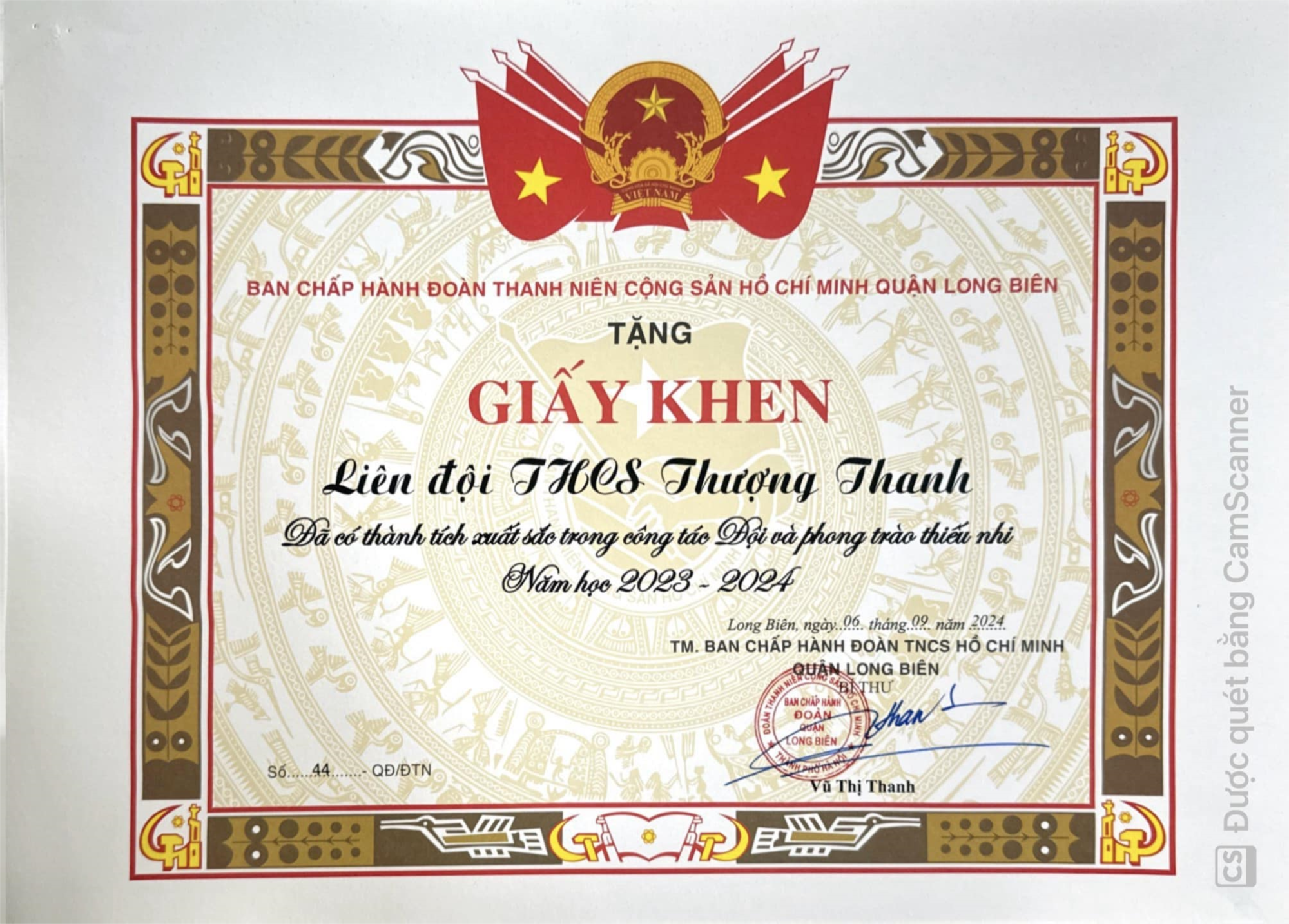 🌹🌸🌺 Năm học 2023-2024 đã ghi dấu nhiều thành tích xuất sắc của Liên đội trường THCS Thượng Thanh, khi liên tiếp nhận được nhiều giấy khen từ Quận đoàn về công tác Đội và phong trào thiếu nhi. Những nỗ lực không ngừng nghỉ của tập thể cán bộ, giáo viên, và học sinh nhà trường đã được ghi nhận qua những giải thưởng danh giá.