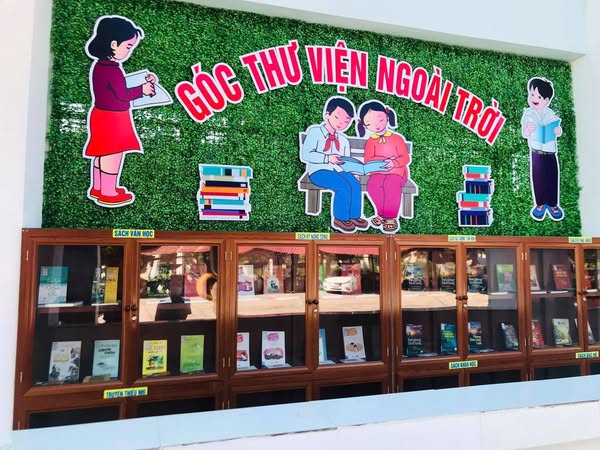 Đặc biệt, thư viện ngoài trời là điểm nhấn sáng tạo, mang đến trải nghiệm mới mẻ và thú vị. Với hệ thống sách phong phú và đa dạng từ văn học, khoa học, đến kỹ năng sống, học sinh có thể tự do lựa chọn và đọc sách trong không gian thoáng đãng. Bàn ghế được bố trí hài hòa dưới tán cây xanh, kết hợp giữa ánh sáng tự nhiên và không khí mát lành, giúp các em tiếp cận tri thức một cách thư thái, không gò bó.