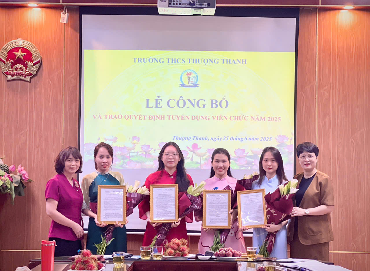 Ngày 25 tháng 6 năm 2025, Trường THCS Thượng Thanh đã tổ chức buổi lễ tiếp nhận giáo viên biên chế và triển khai công tác hướng dẫn giáo viên tập sự năm học 2025–2026. Buổi lễ diễn ra trong không khí trang trọng, cởi mở và thể hiện sự chuyên nghiệp trong công tác tổ chức và phát triển đội ngũ nhà trường.